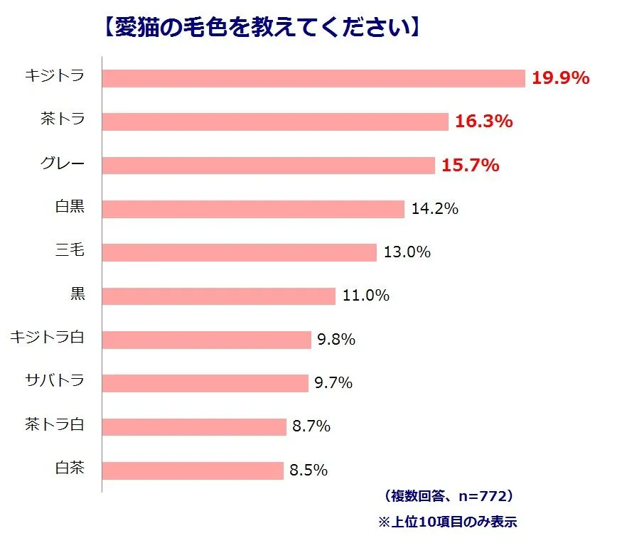 調査結果1:愛猫の毛色、「キジトラ」が第1位