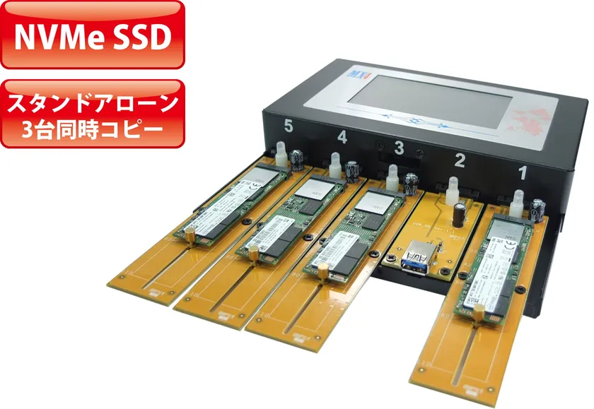 ソフト・ハードウエアセキュリティ製品、PCセキュリティ管理システムの開発メーカーであるオリエントコンピュータ株式会社は、PC無しのスタンドアローンで、PCIe接続のNVMe SSDを3台同時にコピーすることができるSSDデュプリケータ《CF-103-NVMESSD》を発売しました。