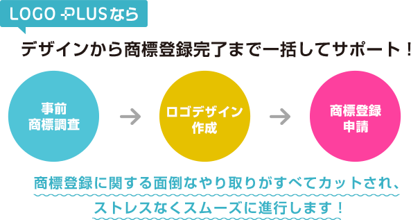 LOGOPLUS(ロゴプラス)とは、ロゴデザイン会社と商標登録のプロフェッショナルである知財事務所がタッグを組み、ロゴ作成から商標登録完了まで一括して対応するクリエイティブサービスです。