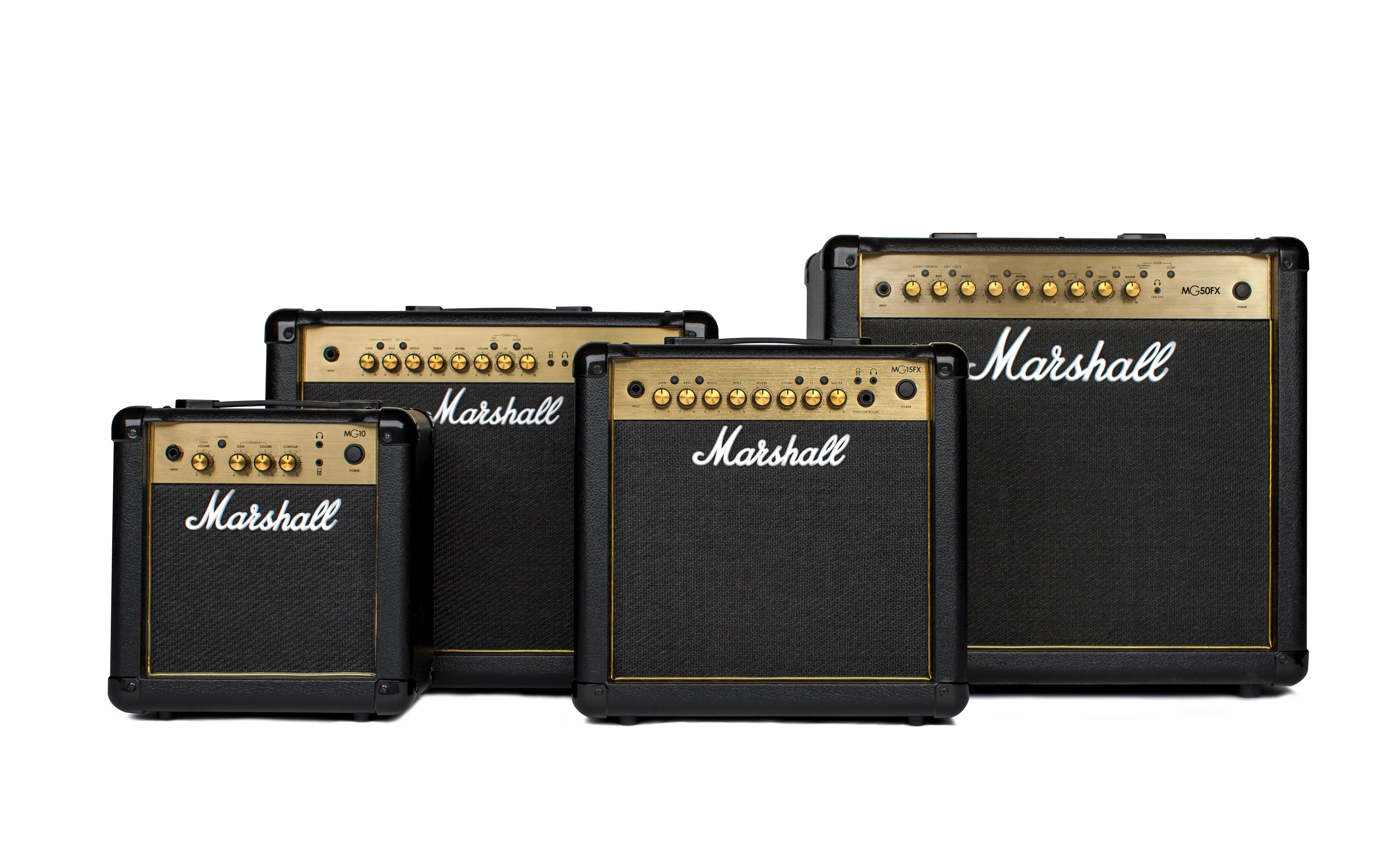 このたび発売する「MG-Goldシリーズ」は、シンプルな操作と手頃な価格でマーシャルならではのサウンドを楽しめるエントリーシリーズとして長年好評を得ている「MGシリーズ」の外観を、マーシャル伝統の象徴的なゴールドパネルを基調としたデザインに変更したリニューアルモデルです。