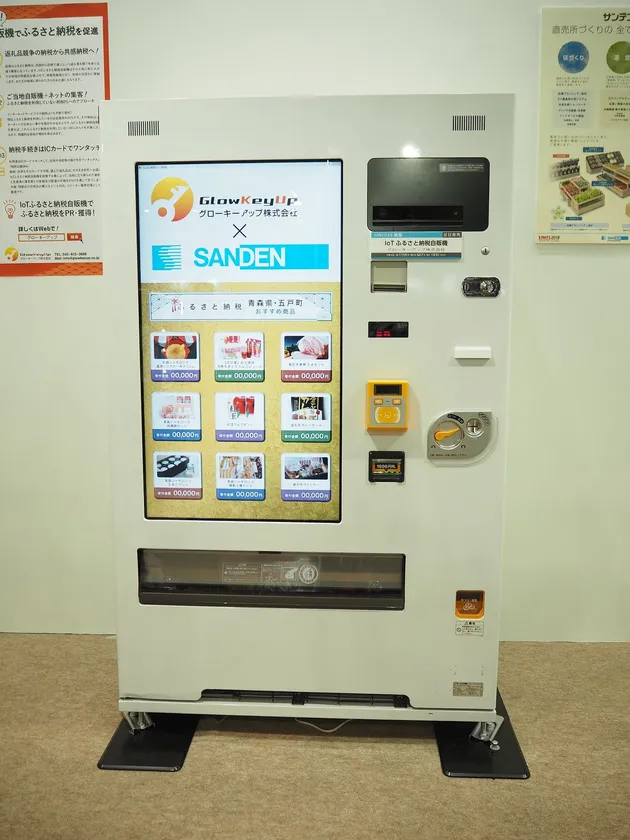 革新的なアイデアを具現化し、流通させることで世界中の人々を豊かにするソリューションを提供するグローキーアップ株式会社(本社:東京都港区、代表取締役:鍵和田 芳光)は、幕張メッセで2018年2月14日から2月16日まで開催されたスーパーマーケット・トレードショー2018で、世界初の「IoTふるさと納税自販機」を発表しました。