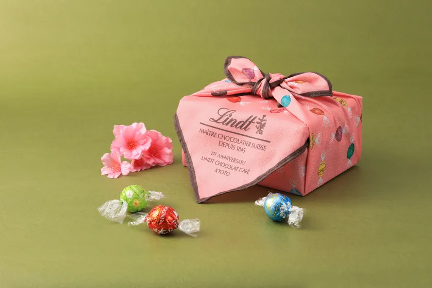 この中から春らしいフレーバーのリンドールをアソートした、オリジナルの風呂敷で包んだギフトボックスを、1周年記念の限定品として発売します。