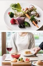 日本料理の調理法である幽庵焼きや、吉野葛・西京味噌といった和の食材・調味料を使用した、独創性溢れる創作フレンチなどをバイキングメニューとともにお愉しみいただけます。