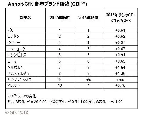 GfKは、Anholt-GfK 都市ブランド指数 (CBI SM) 2017年調査の結果を発表しました。