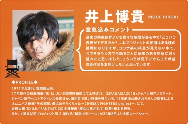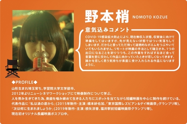 本企画は、8人の監督・脚本家による、オーディション~撮影編集~公開まで、完全リモートで映画制作を行う実験的な取り組みです。