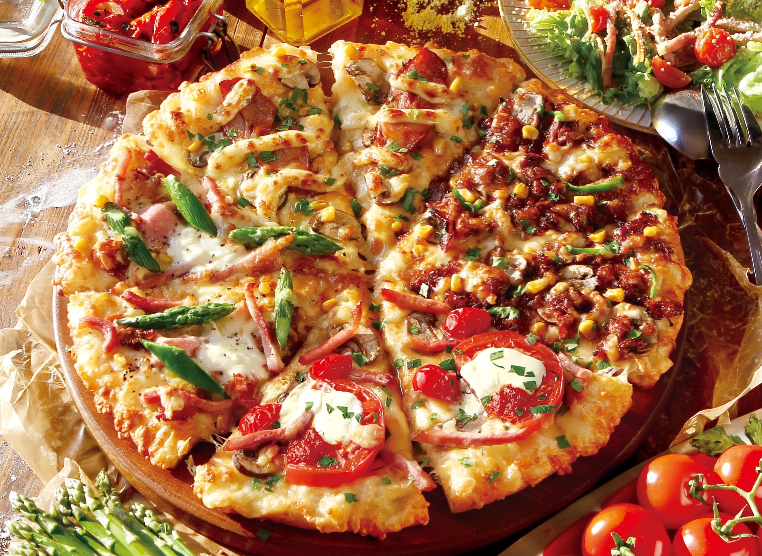 ◆トッピング :イタリア産モッツァレラ・アスパラ・厚切りベーコン・スモークベーコン・生ハム・トマトソースなど