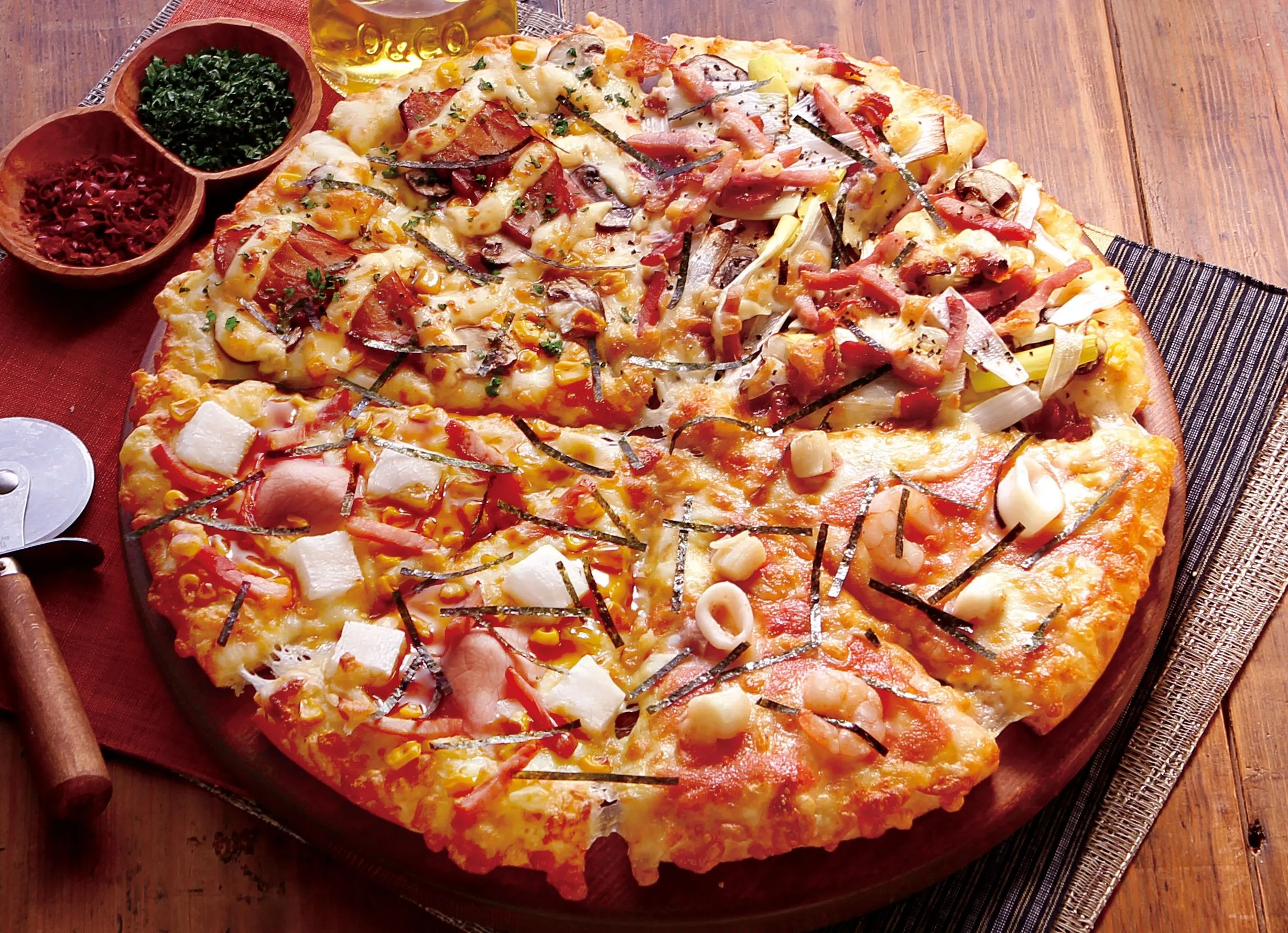 つきたての風味そのままのおもちに、特製テリヤキソースが絡み合う『和風もちベーコン』に、一度食べたらやみつきの『ネギベエ』など、ピザーラではおなじみの和風テイストのクォーターピザです。