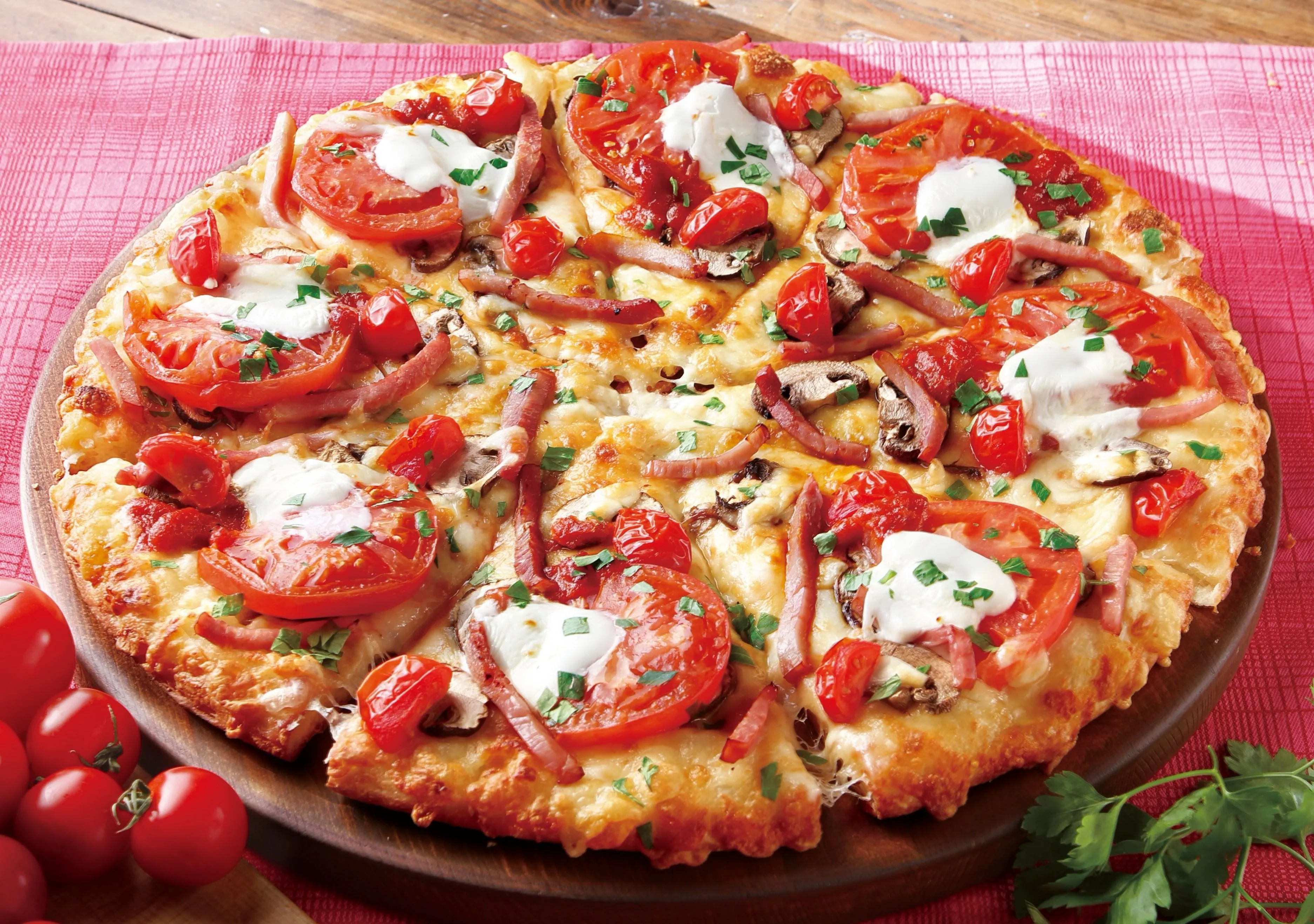 ◆トッピング :北海道産マスカルポーネチーズ・厚切りベーコン・スライストマト・チェリートマト・セミドライトマトソースなど