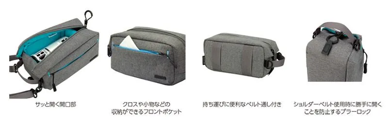 指をかけて素早く開閉のできるリングタイプのプラーと、開口部が大きく開く構造により、ビデオカメラを素早く取り出すことが可能です。