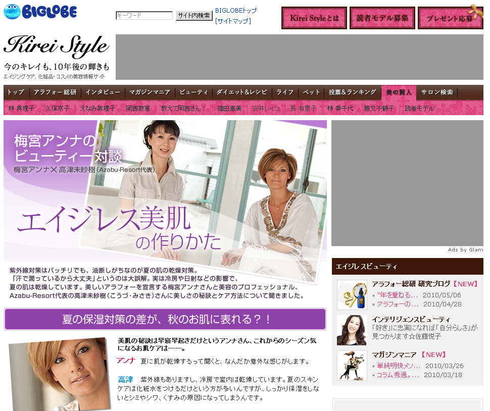 BIGLOBE Kirei Style「エイジレス美肌の作りかた」http://www.biglobe.co.jp/press/2010/06/100602-1.html