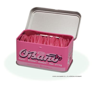 輪ゴムをひっぱるハローキティがとってもキュートな、〈オーバンド〉と〈ハローキティ〉がコラボしたデザイン缶です。中には劣化しにくいシリコーン製のピンクの輪ゴムが入っています。《オーバンド ハローキティ缶》は、安心の日本製です。