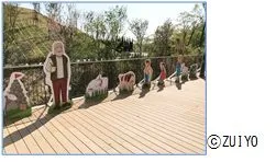 10体のキャラクターパネルや、キャラクターの特大ぬいぐるみが登場。また、エリア内「リトルホルティ」では、ハイジとクララの衣装の無料レンタルを実施します。異国情緒漂うエリア内で、アルプスの少女ハイジのキャラクターと一緒に写真を撮影できます。