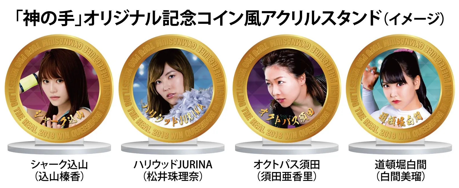 「神の手」では、本日開催される「豆腐プロレスThe REAL 2018 WIP QUEENDOM in 愛知県体育館」との、記念コイン風アクリルスタンドがゲットできるコラボ企画を開始いたしました。当イベントは、テレビ朝日系列で放送されていた連続ドラマ「豆腐プロレス」のリアルイベントです。AKB48グループメンバー31名がリングに上がり、観客の目の前にして本気で対決します。