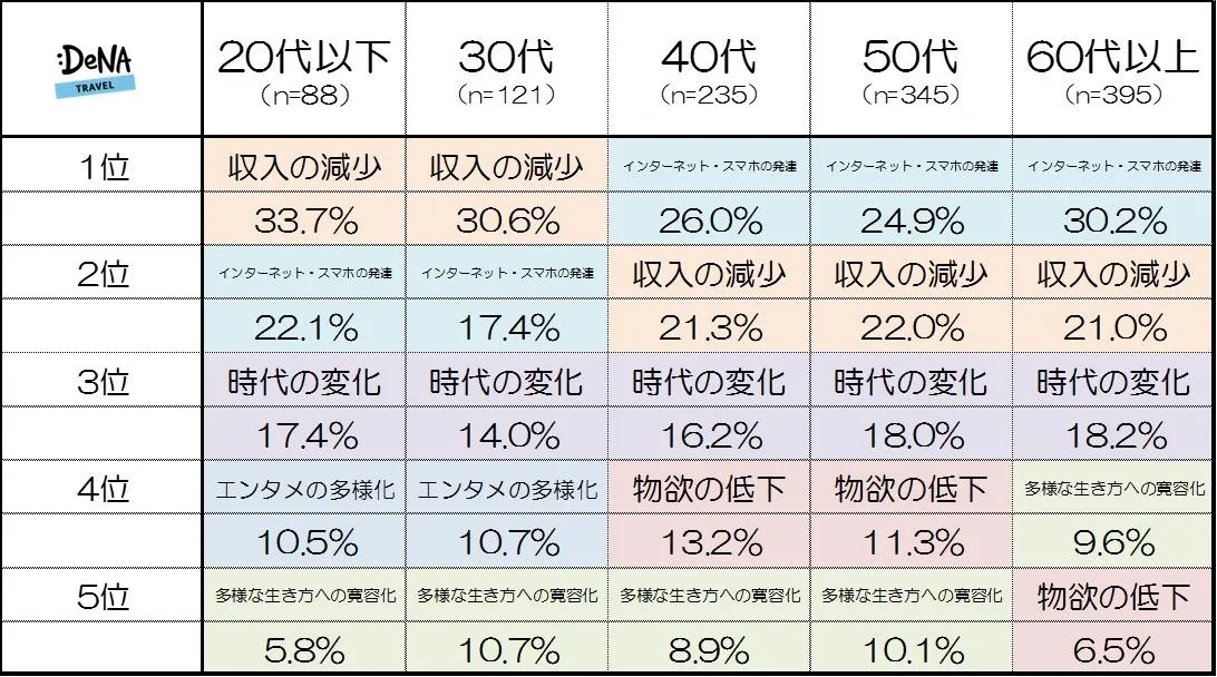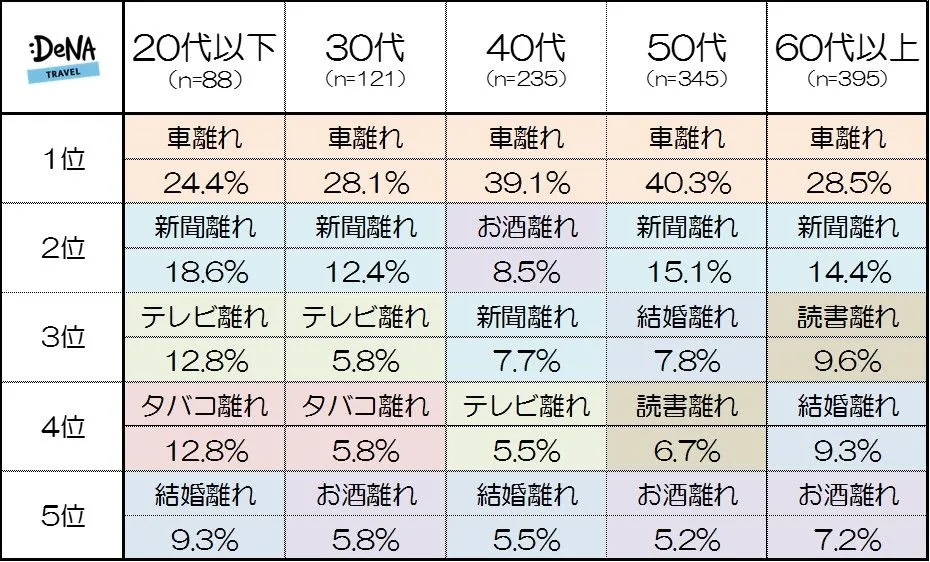 オンライン総合旅行サービス「DeNAトラベル」(http://www.skygate.co.jp)を運営する株式会社DeNAトラベル(本社:東京都新宿区、代表取締役社長:大見 周平)は、10代~70代の男女1184名を対象に「若者の〇〇離れ」に関する調査を実施しました。