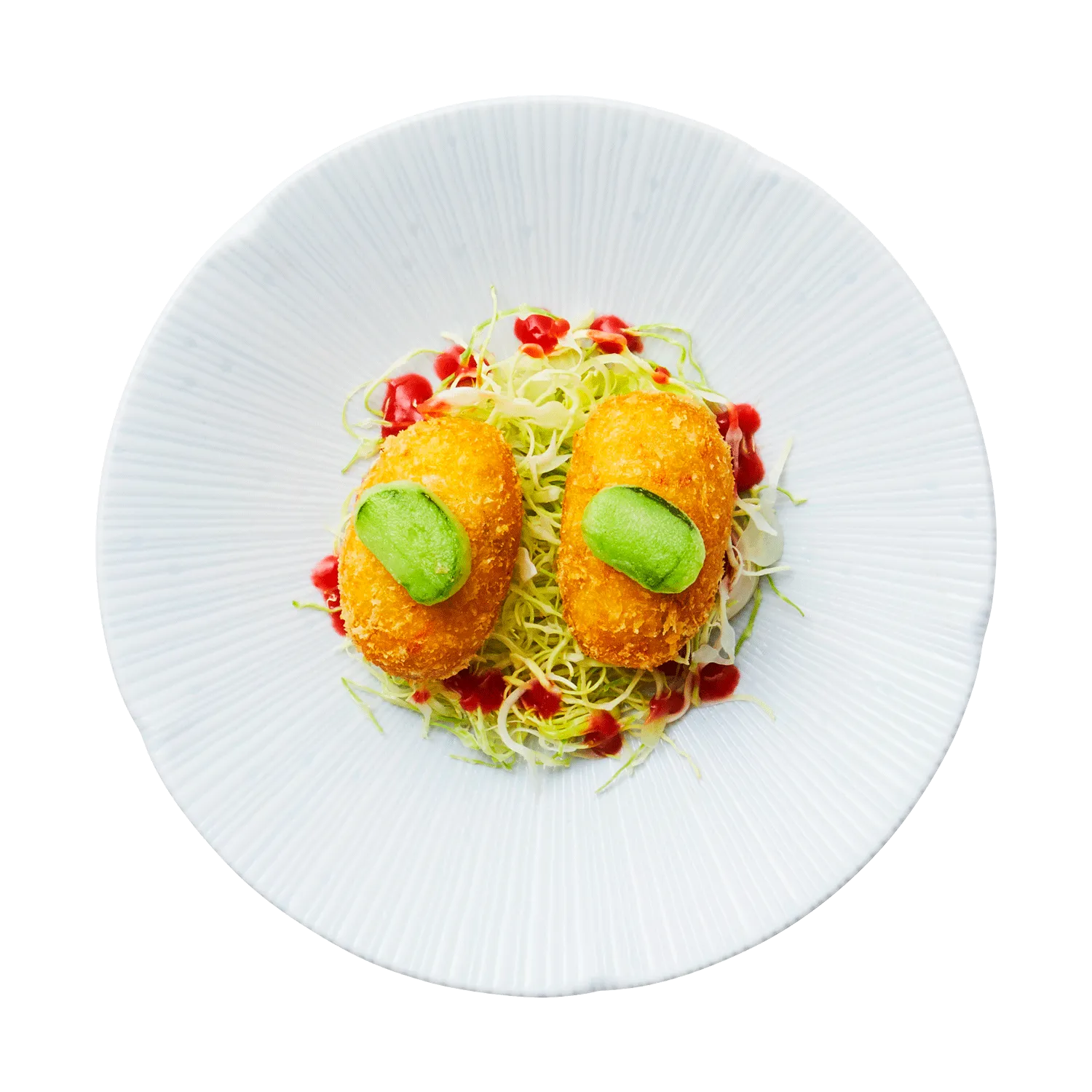 越前蟹の甘みと、ふきのとうの程良い苦味が心地良い、大人のクリームコロッケです。