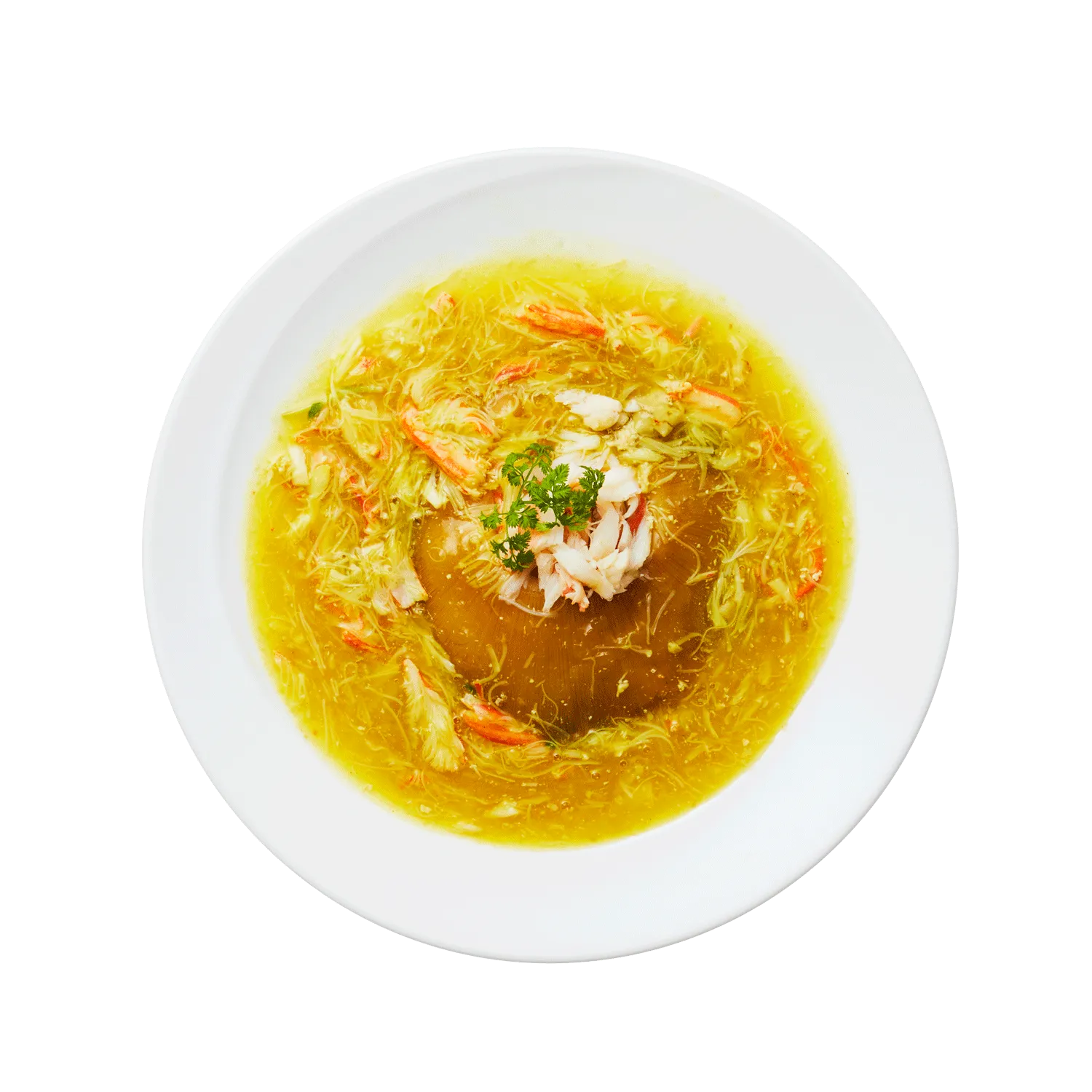 中華料理の代表的なフカヒレの姿煮を越前蟹のミソと身をたっぷり使って仕上げます。フカヒレと蟹のコクのある一品です。