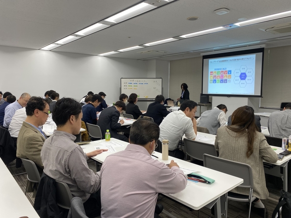 当日は、座学でSDGsについて学んだ後、少人数のチームに分かれ、2030年のわたしたちの世界がどうなっているのかシミュレーションをすることができるカードゲーム「2030 SDGsゲーム」を行い、なぜSDGsが必要なのかを考え、世界は繋がっていることを理解するきっかけとなりました。社会課題解決につながる取り組みを考えるグループワークを合わせて行うことで、今後の自社での取り組みを考えながら、従業員間のコミュニケーションの促進にも繋がりました。