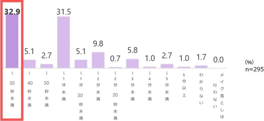 ■働く20代女性の3割が、メイク落としを30秒未満で済ませている。