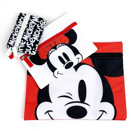 ミッキー、ミニーのサイズ違いのポーチに、ロゴデザインのミニポーチもセットになっています。ビビッドなカラーも目立っていて、バッグの中でもすぐに目につきますね。