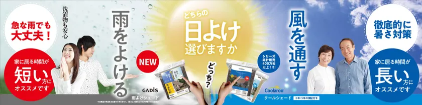 ライフスタイルの多様化に伴い、特に共働き世帯が増える中、留守をすることが多くなり、日よけのみならず洗濯物を急な雨から守るというニーズが増えてきました。また従来の「Coolaroo(クーラールー)」シリーズのシェードが支持されている理由の一つに屋外から家を見た場合、景観を崩さず日よけができる点にあります。今回新たに発売する「GADiS(ガディス)」シリーズの『雨よけシェード』もただ雨よけできたら良いのでなく、外からの景観を崩さずに雨よけできることがポイントです。