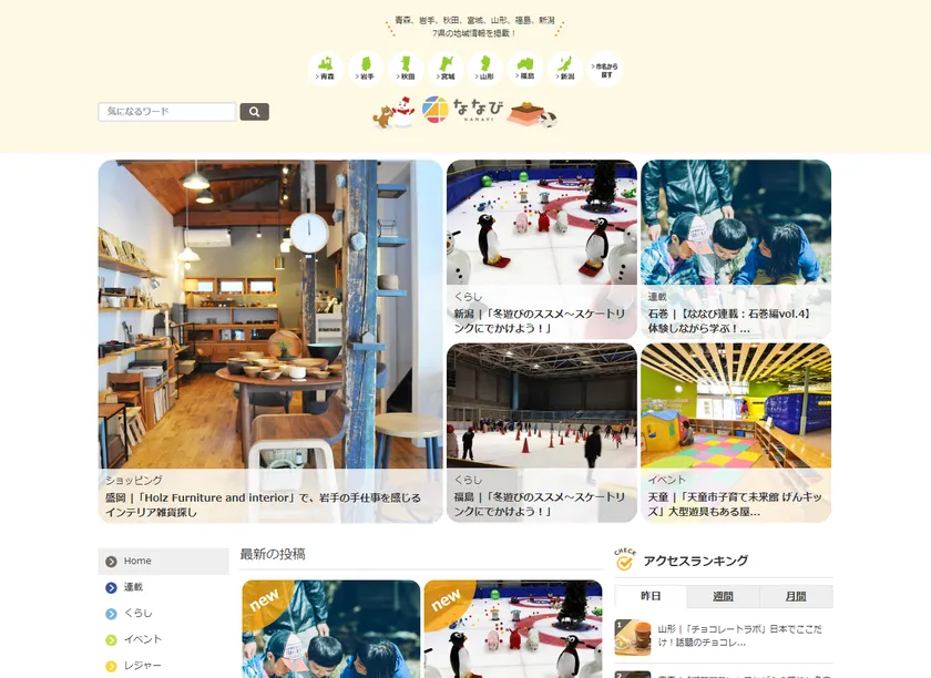 「ななび」は青森県・岩手県・秋田県・宮城県・山形県・福島県の東北6県と新潟県の情報を、現地からお届けする地域密着型情報サイトです。現地で直接取材した情報や、各自治体の発信する情報をもとに、地域住民の目線でその地域に根ざした情報を発信していきます。