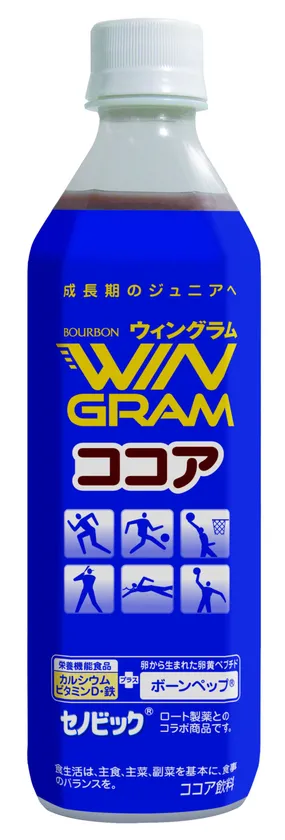 「ウィングラムココアPET480(セノビック)」および「ウィングラムプロテインバー(セノビック)」は、ロート製薬の成長期応援飲料「セノビック(R)」とのコラボレーション商品です。