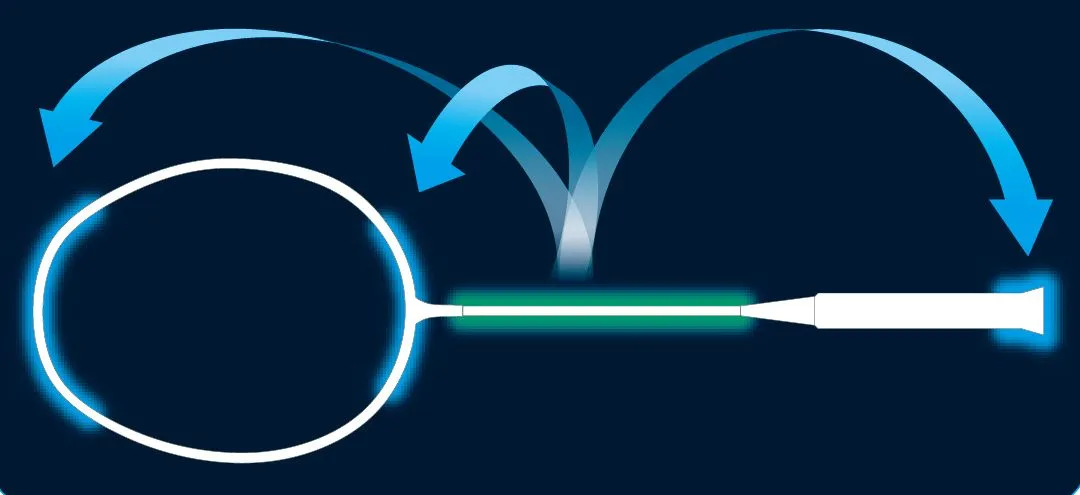 フレームの上部とジョイント部分、グリップの末端の3か所に重量を配分する新設計を採用したことでフォロースルー(打撃後の振り切る動作)の勢いを落としにくくして次のショットの準備が素早くでき、連続スマッシュを実現。