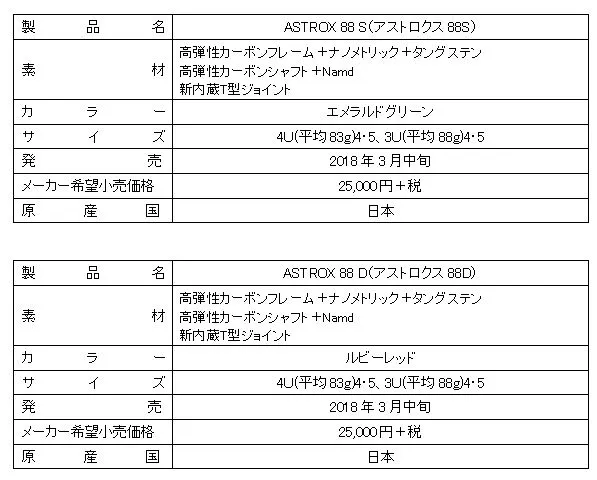 ヨネックスのバドミントンラケット 前衛向け「ASTROX 88 S」 後衛向け「ASTROX 88 D」 2018年3月中旬より世界同時発売