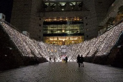 高さ約10m、横幅約29mの船型の石壁を活用した約10万球のイルミネーションを実施中。中央にあるハートのフォトスポットがロアンティックな雰囲気を演出しており、音楽に合わせたライトアップもお楽しみいただけます。