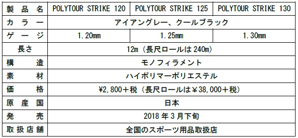 高い性能持続性でタフなゲームでも攻め続けられる 国内自社工場製テニスストリング「POLYTOUR STRIKE (ポリツアーストライク)」2018年3月下旬より発売
