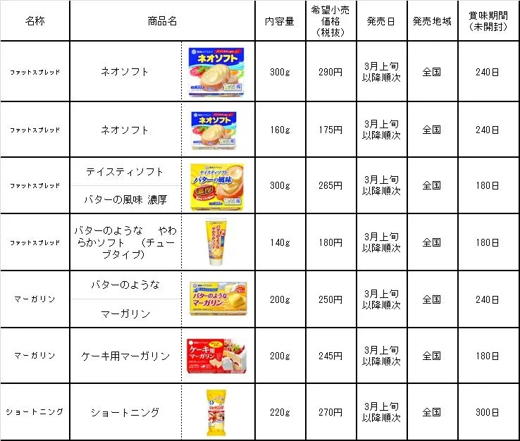 【雪印メグミルク】家庭用マーガリン類・ショートニング 2018年3月上旬より全国にてリニューアル発売