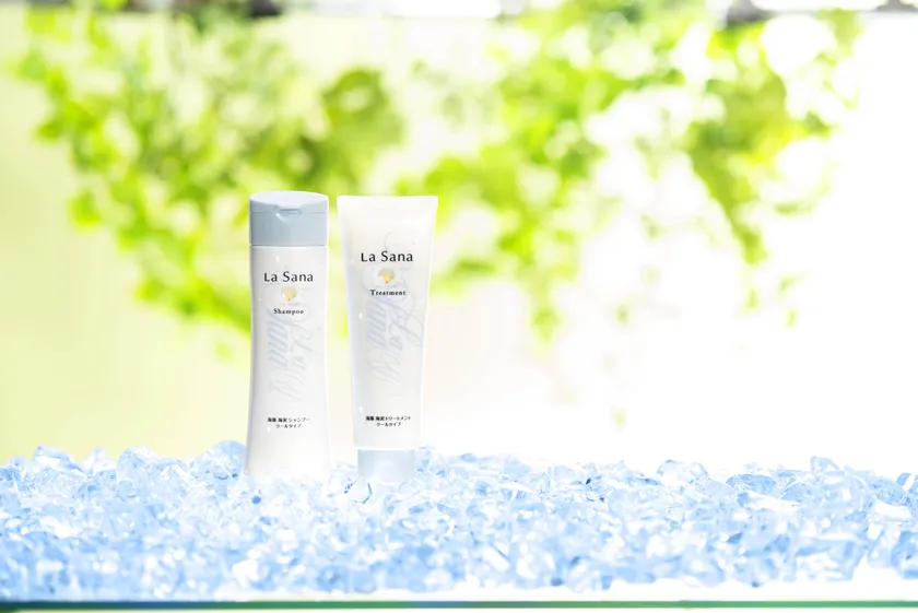 『ラサーナ 海藻 海泥 シャンプー&トリートメント クールタイプ』は、夏の気になる頭皮のベタつき・皮脂汚れをすっきり洗い上げ、同時にダメージ補修する、夏限定のシャンプー&トリートメントです。新たに汗ケア成分(※2)を追加したことにより、暑い夏、髪が知らないうちに受けている汗によるダメージを補修。7種のハーブエキス(※3)配合のすっきり爽やかなハーバルミントの香りで、頭皮のニオイをケアします。天然はっか由来のメントールがひんやりとした清涼感を与え、お風呂上がりも気持ち良さが続きます。また、フランス・ブルターニュ産 海藻のエキス(※4)、海泥(※5)、アミノ酸系洗浄成分(※6)配合で、潤いを守りながら余分な汚れだけを吸着・除去し洗い上げます。シャンプーはサラッとゆるいテクスチャーが特長。頭皮にそのまま塗布すれば、頭皮全体に行き渡り、頭皮と髪をまんべんなく洗うことができます。シャンプーとトリートメントの合わせ使いだとお湯のみ洗浄と比べて、-4.1℃頭皮温度が下がり爽快感がアップします。暑い夏を涼しく快適に過ごしたい方におすすめです。