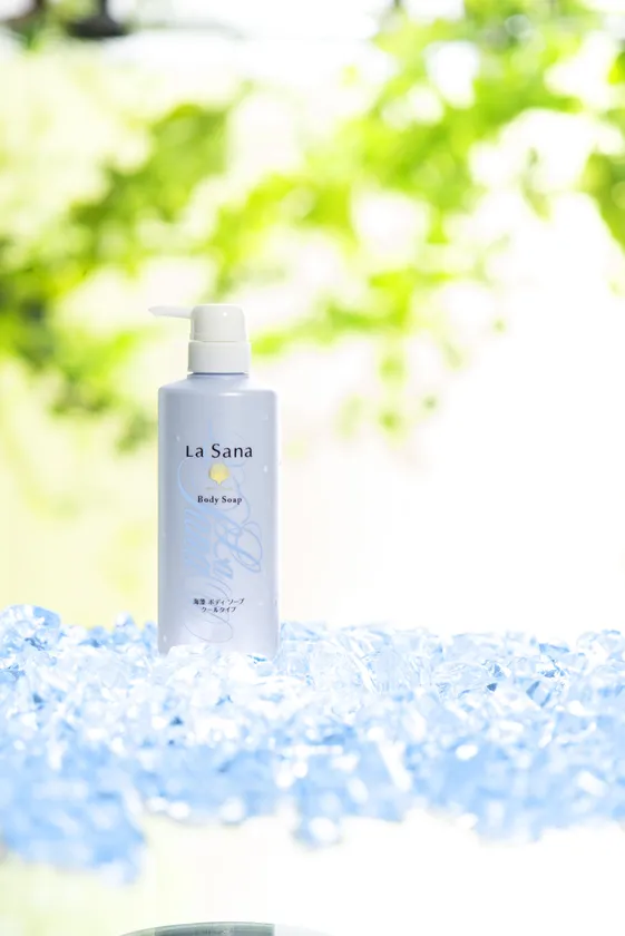 『ラサーナ 海藻 ボディ ソープ クールタイプ』は、フランス・ブルターニュ産 海藻のエキス(※2)と赤ちゃんコラーゲン(※3)を配合し、潤いを守りながらしっとりみずみずしい素肌に導く、夏限定のボディソープです。天然はっか由来のメントールが程良くひんやりとした清涼感を与え、すっきり爽快なバスタイムをお楽しみいただけます。アミノ酸系さらさらパウダー(※4)で洗い上がりはべたつかずしっとりさらさら。瀬戸田産レモン果汁配合の爽やかなシトラスミントの香りです。