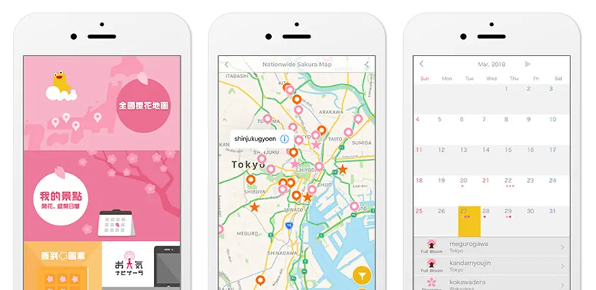 2018年シーズンの国内の桜の名所の開花・満開予想日や、開花状況がわかるiOS・Android対応アプリで、これまで日本語のみ提供していましたが、3月5日に英語、中国語(繁体字)での提供を開始しました。使用している情報は、日本気象独自の開花予想や生長情報を用いています。