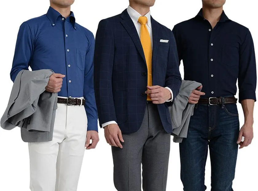 さらにニット生地の特徴である洗濯後の縮みを、加工によりシャツ生地と同程度の縮み幅に抑えることに成功。