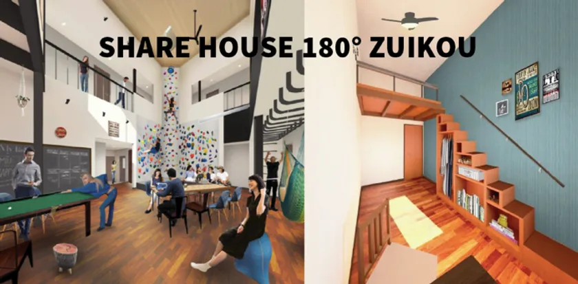 室内に8mの大迫力ボルダリングが設置されたシェアハウス 『SHARE HOUSE 180°ZUIKOU』が2018年3月11日オープン!