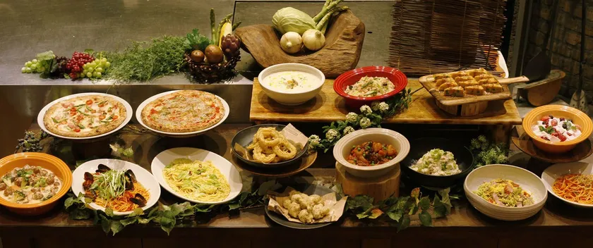 東日本の一部店舗と天神店・熊本店では、一足早く春の訪れを感じる限定ブッフェメニューを約20種類取り揃えました。春キャベツやアスパラの緑、新玉ねぎや筍の白、桜海老のピンクなど食材が彩り豊かになる春の季節。春野菜の香りと苦味や甘みなどの豊かな味、シラスや桜海老、貝などの魚介の旨味を感じるラインナップです。リラックスした気持ちでたくさんブッフェを食べて、冬から春へリセットしてみませんか。