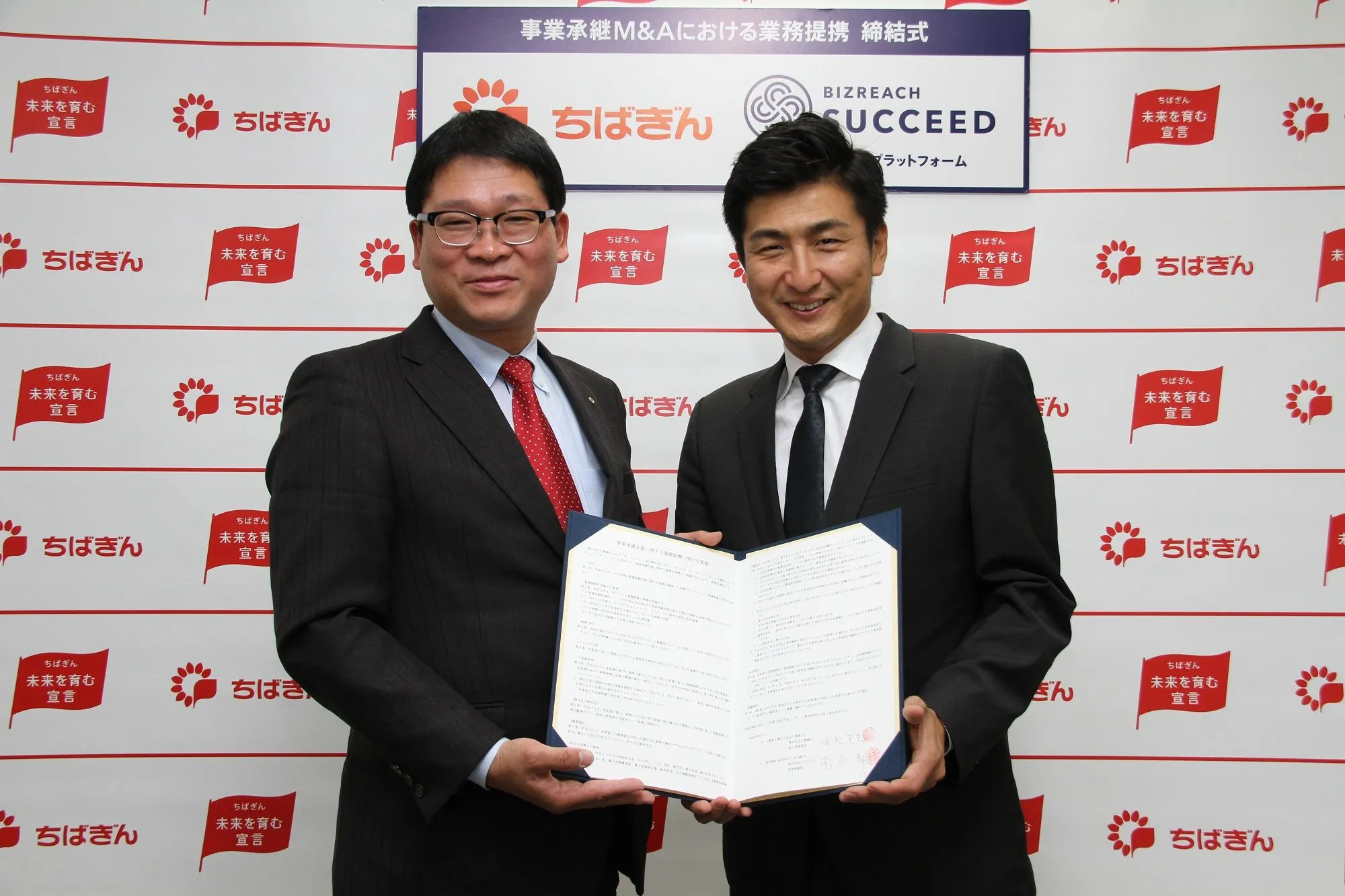 株式会社ビズリーチ(所在地:東京都渋谷区/代表取締役社長:南 壮一郎 以下、ビズリーチ)と株式会社千葉銀行(所在地:千葉県千葉市/取締役頭取:佐久間 英利)は、千葉県内をはじめとする中小企業の事業承継問題を解決するため、2018年3月6日に業務提携に関する覚書を締結しました。本業務提携は、ビズリーチが運営する事業承継M&Aプラットフォーム「ビズリーチ・サクシード」を活用した事業承継ニーズの可視化と価値ある事業の円滑な承継を推進し、地域産業の活性化に貢献することを目指します。なお、「ビズリーチ・サクシード」における地方銀行との業務提携は初となります。