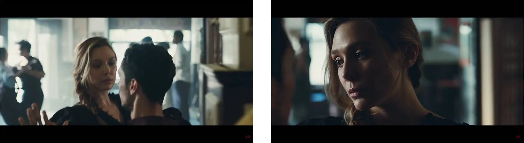 カフェで男性と踊るエリザベス。その表情は淡々としており、虚無感さえも伝わってきます。