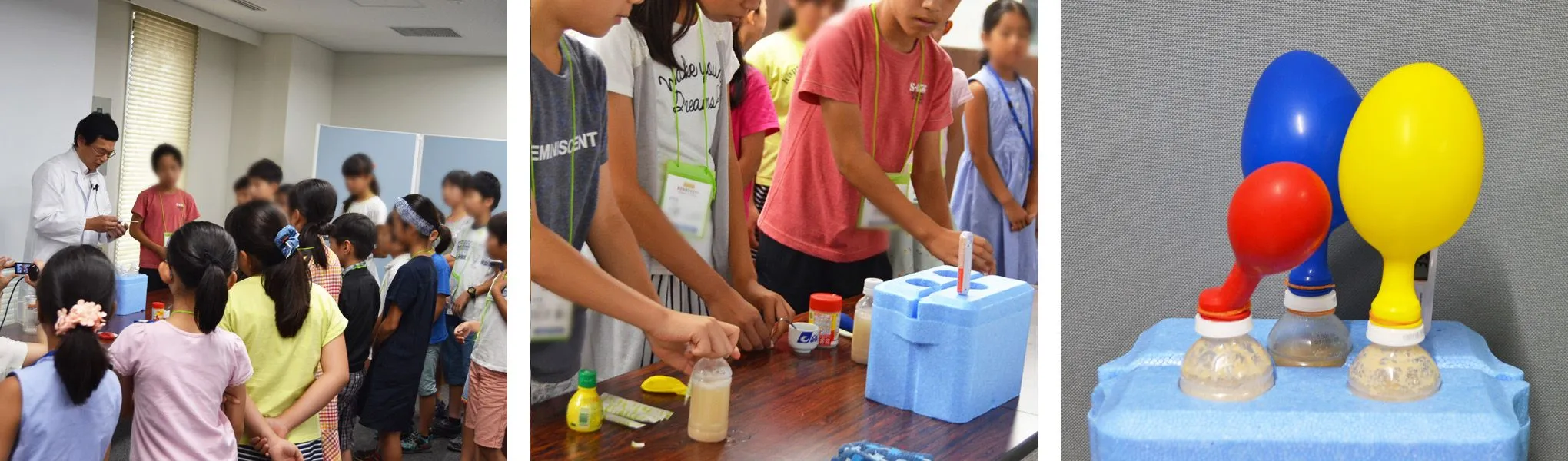 このセミナーでは、「酒蔵開放」を親子連れでも楽しんでもらい、和食や日本の伝統に興味を持つきっかけを提供したいと考えております。日本の伝統的な発酵食品(納豆・しょうゆ・みそ・日本酒など)に起こる発酵の仕組みを、実験やクイズを通してわかりやすく体感していただきます。