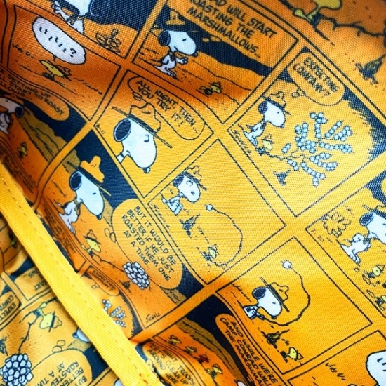 最大のチャームポイントはこの裏地。ファッションを選ばないシンプルさでどんどん使えるのに、開けた時にはスヌ愛が爆発する、大事にできそうなアイテムです。コミック柄とのコンビネーションが素敵なのです。