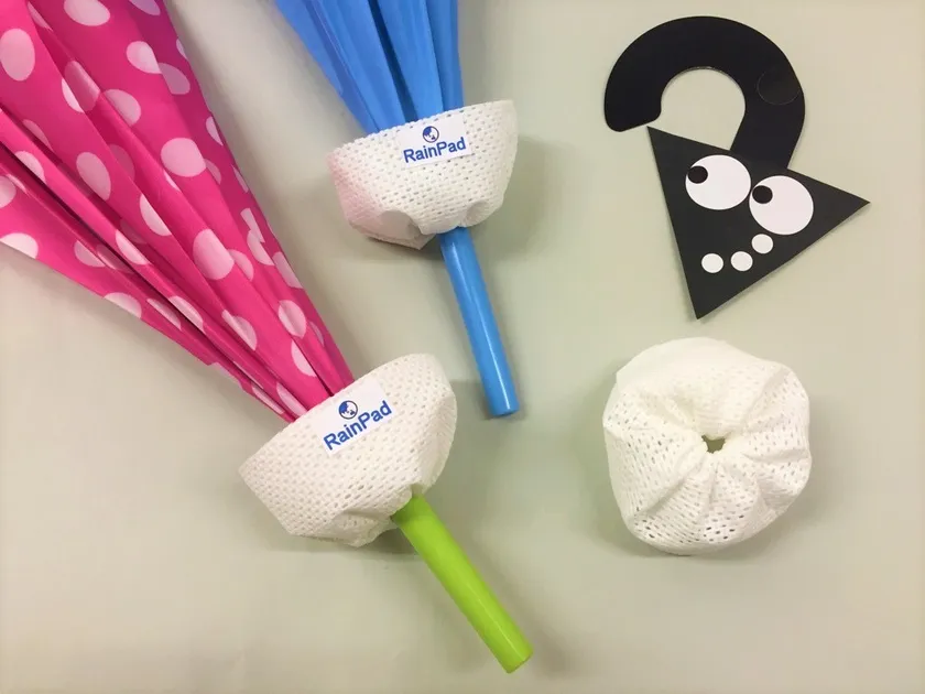 傘マナー販促グッズ『レインPad』4月から販売開始 主婦がグッズ考案、障がい者が製造、エコにもつながるアイデア商品 ~ぬれた傘の水滴を拭き取り、垂れるポタポタも防止!~