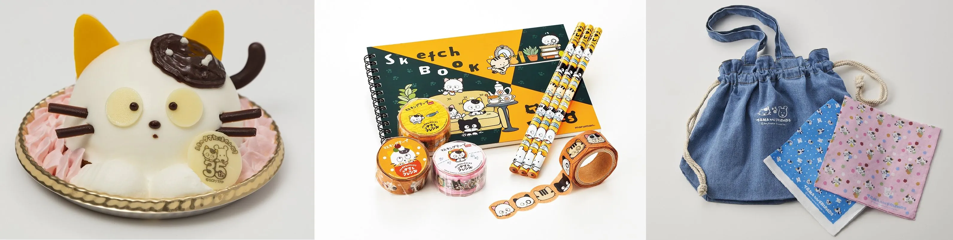 タマの眼差しに思わずキュンとなる35周年限定のタマケーキをはじめ、ふわふわの手触りのぬいぐるみやステーショナリーなど、大人から子どもまで楽しめるグッズが登場します。