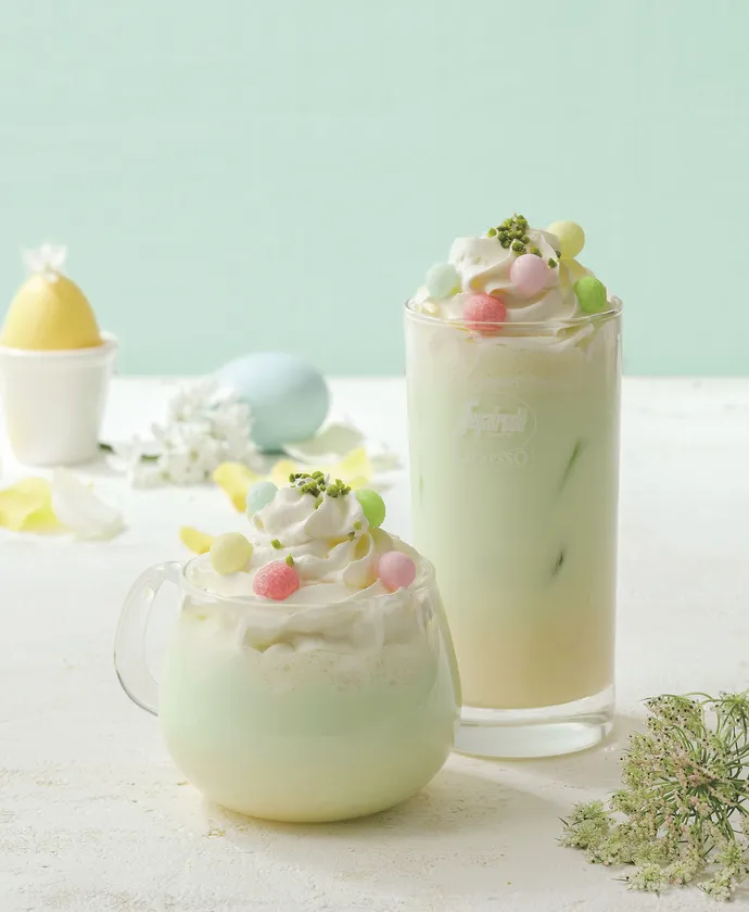 『イースター・パステルラテ - ピスタチオ&カスタード』と『アイス・イースター・パステルラテ - ピスタチオ&カスタード』は、“パステルカラーのイースター”をテーマに開発した、セガフレードオリジナルのラテです。