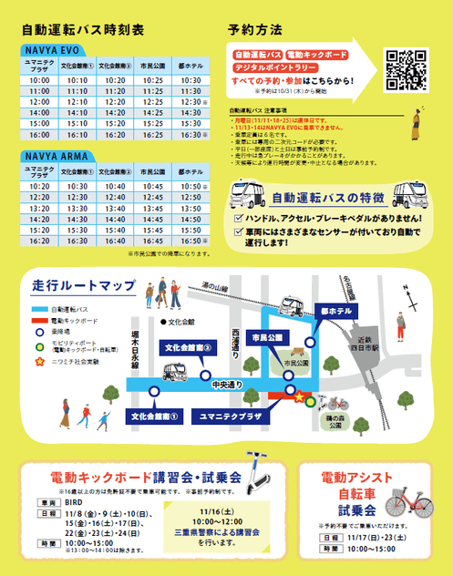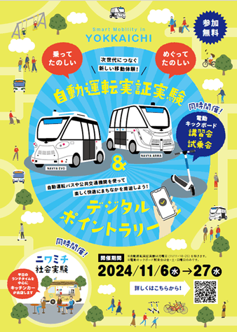 四日市中央通りにおける魅力的なまちなかの実現を目指して 本年度で5回目となる自動運転EVバスを活用したモビリティ実証実験と四日市版MaaS実証実験を同時実施