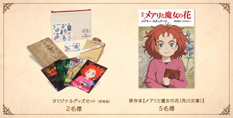 『メアリと魔女の花』の配信を記念して、U-NEXTで本編をご覧になった方の中から抽選で計7名様に豪華関連グッズをプレゼントいたします。