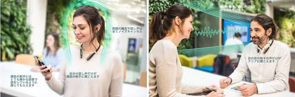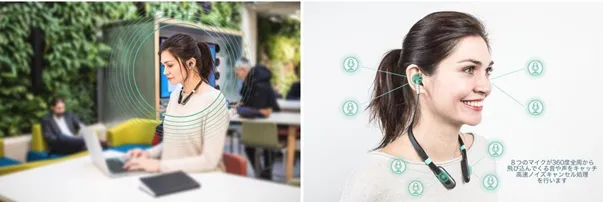 ■周囲の音を消し去りあなたの声だけを相手に届けられる『クリスタルクリアコール』機能や、前方60度の範囲の音だけを認識し周囲の騒音や話し声はカットできる『トークインノイズ』機能によりガヤガヤしたオフィスでの営業電話や、外出先でのクライアントからの電話対応もスムーズにできます。