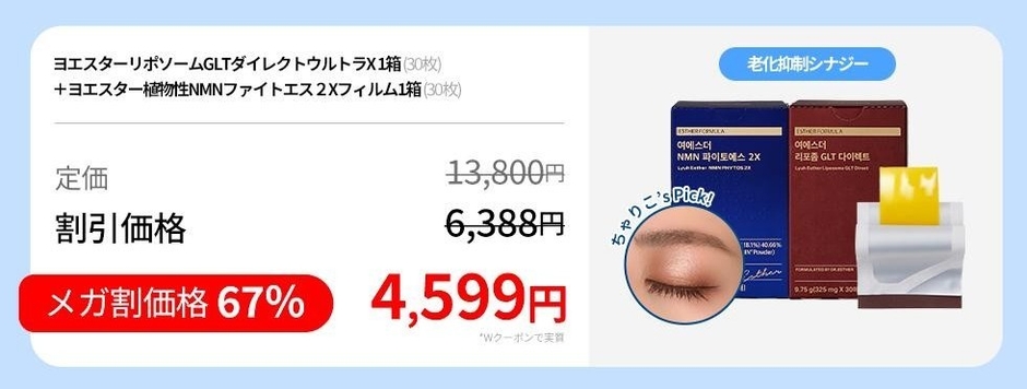 エスターフォーミュラのヒット商品「(酵母由来)ヨエスターグルタチオンダイレクト5X」は、グルタチオン(酵素エキス)を中心に、ビタミンC・ビタミンE・ミルクシスルを贅沢にブレンドしたフィルムタイプサプリです。肌のくすみをケアし、明るさアップに効果的です。口腔内でフィルムが溶ける設計で吸収率を最大化し、エイジングケアとトーンアップを実感しやすくしています。小型で持ち運びにも便利なので、外出先でも無理なく継続可能で、錠剤・カプセルが苦手な方にも最適です。現在、3個購入で1個無料のキャンペーン実施中です!
