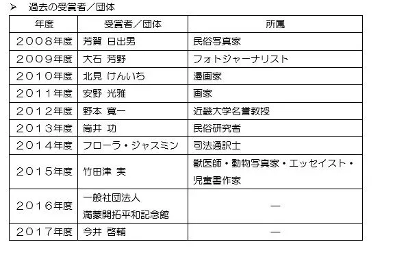「旅の文化」に貢献した諸活動の中から、特に独創的な旅の体験により、それを作品として紹介したり、諸活動を通じて旅の文化の質的向上に貢献した個人や団体を選考し顕彰しています。