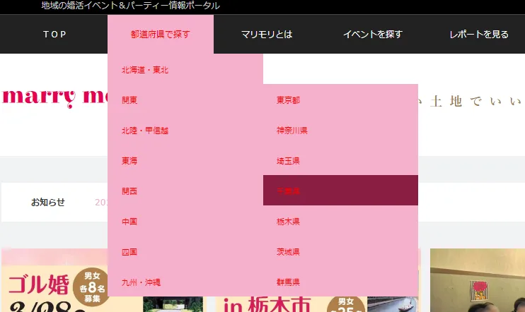 このほどユーザーのさらなる利便向上のために、「47都道府県別」で情報を探しやすくなるようインデックスページを充実。日本全国をカバーする形で“地域密着型”の婚活をサポートしてまいります。